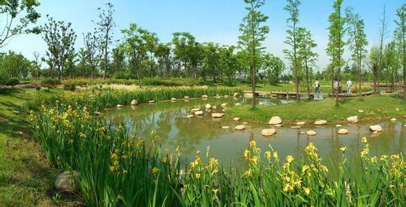用人工手段去创造一个自然环境,形成有湖泊、河谷、溪流、湿地、山林、坡地、树林等多种形式的自然生态环境,突显城市绿洲境界。