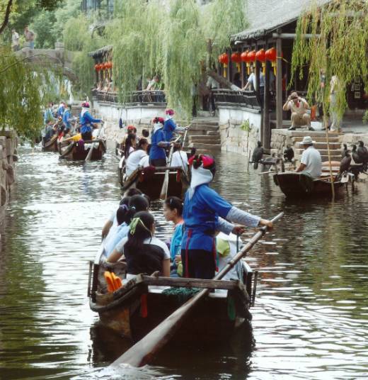 桨声灯影的甪直,美在画中、美在每一座桥、美在每一条河,更美在那一道道灵动的风景线。游客来了,船娘娴熟地驾驭着手摇船,轻摇船橹,载着你游弋在碧波粼粼的古老河道中。船在水中游,如在画中行,那粉墙黛瓦、枕水人家一一掠过眼帘,留下关于江南的美好印记。