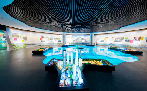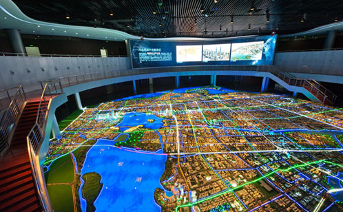 展馆二层展示苏州工业园区的总体规划、重点片区规划,包括总体规划模型和未来城市数字沙盘等内容。