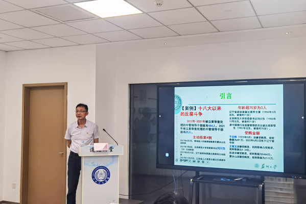 “思政教师进企业”第六期公益讲堂活动于9月22日在昆山市卫生监督所举行,苏州大学张才君教授进行《新时代全面从严治党和反腐倡廉建设》主题宣讲。
