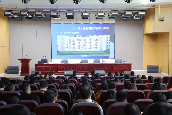 11月7日,由苏州市总工会、苏州大学共同推出的“思政教师进企业”系列苏州工会网上学院公益讲堂第十期在苏州轨道交通运营有限公司举行。苏州大学黄建洪教授进行《苏州三大法宝与经济社会高质量发展》主题宣讲,共100余名员工聆听了讲座。