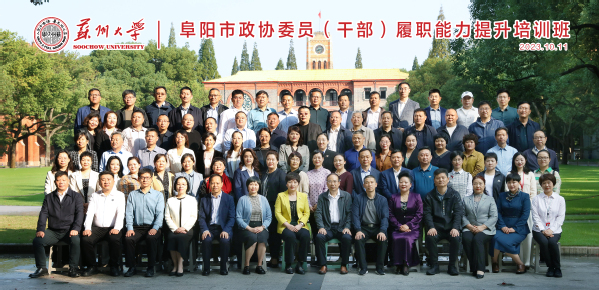 10月11日,由苏州大学承办的“阜阳市政协委员(干部)履职能力提升培训班”在我校顺利开班,来自阜阳市的77位政协委员(干部)参加了本次培训。阜阳市政协党组成员、秘书长、机关党组书记房继红同志、苏州大学管理培训学院副院长王健同志出席了开班仪式。