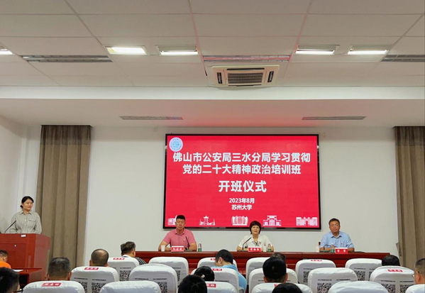 8月29日,由苏州大学承办的“佛山市公安局三水分局学习贯彻党的二十大精神政治培训班”在我校顺利开班,来自佛山市的41名学员参加了此次培训。佛山市公安局三水分局党委副书记、政委翟海殷,佛山市公安局三水分局党委委员、副局长孙建国,苏州大学管理培训学院副院长宋军出席了开班仪式。