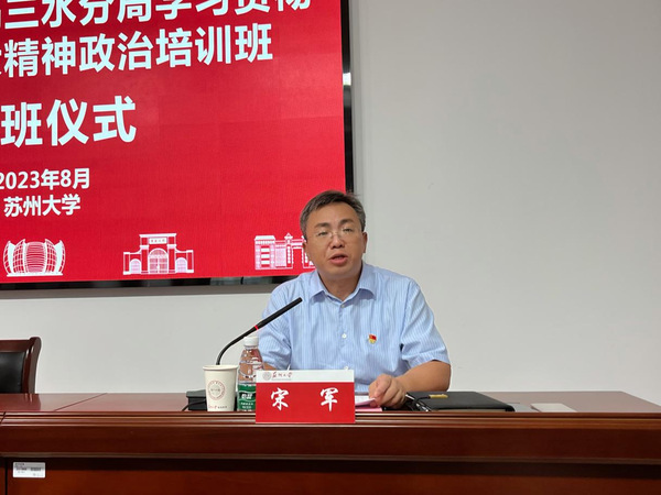 宋军首先对全体学员的到来表示欢迎,并向学员们介绍了苏州在经济发展和城市建设等方面积累的丰富经验。他着重介绍了苏州大学的百年发展历史、办学优势和学科建设成果,包括在人才培训方面的专业特色和优秀师资。他表示,我校将聚焦本次培训需求,全力为此次培训提供服务保障。最后,他祝愿学员们在苏期间学习愉快,学有所成。