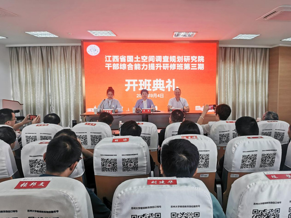 9月4日上午,由苏州大学承办的江西省国土空间调查规划研究院干部综合能力提升研修班(第三期)在我校顺利开班,来自江西省国土空间调查规划研究院的50多名学员参加了此次培训。江西省国土空间调查规划研究院党委书记黄敏、苏州大学继续教育学院院长缪世林出席了开班典礼。