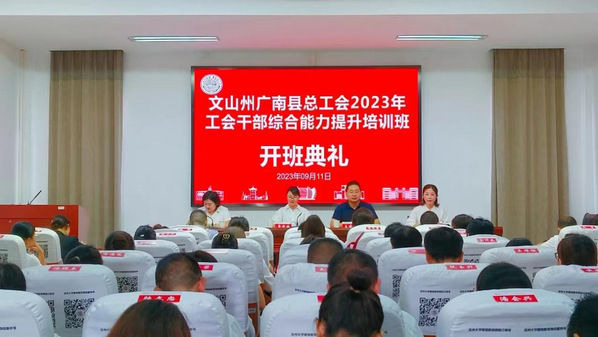 9月10日至16日,由苏州大学承办的文山州广南县总工会2023年工会干部综合能力提升培训班在我校顺利举办,来自文山州广南县部分基层的50位工会主席、工会工作者参加了此次培训。开班典礼于9月11日举行,文山州广南县总工会党组成员、副主席韦素焕,文山州广南县总工会党组成员、副主席农春艳,苏州大学管理培训学院培训部主任王建文出席。