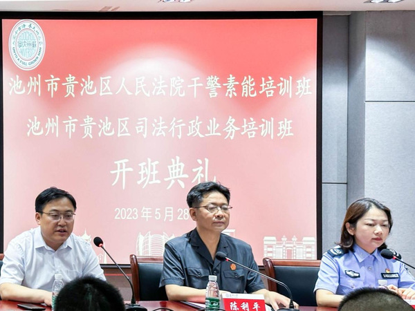 陈利平作开班动员讲话,他就此次培训对学员们提出了几点要求:一是要珍惜本次培训机会,联系实际,注重实效。秉承自觉学习终身学习的意识,以良好的精神状态参与本次培训学习,不辜负组织的希望。二是要明确目标,切实提升能力本领。大家要加强各领域知识技能的学习,坚持在实干中学习、加强知识的更新。三是要服从组织安排,认真遵守培训建议。一定要强化自我约束,规范言行举止,自觉服从管理,充分展现贵池区人民法院队伍良好的精神风貌。最后,他预祝大家在培训期间学习顺利。