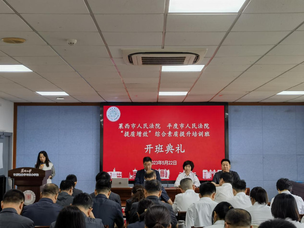 经过精心筹备,5月22日,由苏州大学承办的莱西市人民法院、平度市人民法院“提质增效”综合素质提升培训班在我校顺利开班。莱西市人民法院院长刘英,平度市人民法院院长王栋,苏州大学管理培训学院副院长居民出席了开班仪式。