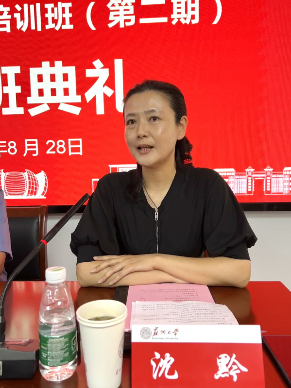 沈黔首先代表苏州大学对参加本次培训的学员表示欢迎,并为各位学员详细介绍了我校百年发展历程,以及目前苏州大学各个学科发展概况。她表示,此次培训课程内容贴切实际,上课形式“学”“践”结合,希望能够为信阳市检察系统的工作带来新的思考和启迪,提升检察系统工作综合能力的同时高质量推进检察系统工作的发展。她还希望学员们能够在学习之余,跟随习近平总书记的步伐,到苏州园区和古城区走一走,感受苏州传统与现代相结合的独特魅力。最后,她祝福各位学员在苏州大学的学习和生活顺心、顺利。