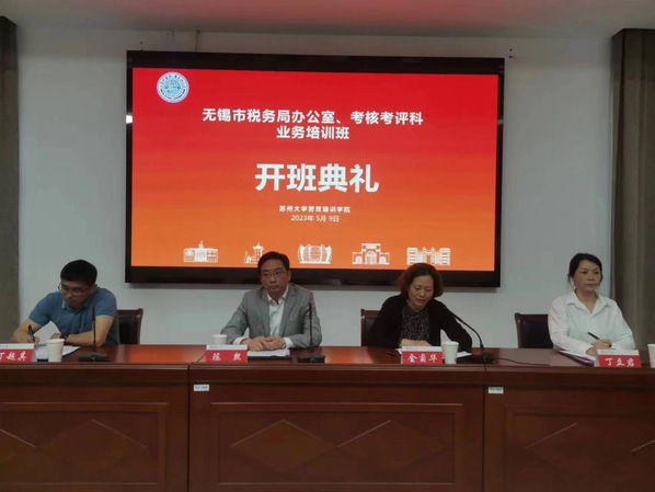 5月9日,由苏州大学承办的2023年度无锡市税务局办公室、考核考评条线培训班在我校顺利开班,来自无锡市税务局的60位学员参加了本次培训班。无锡市税务局党委委员、副局长陈熙,无锡市税务局办公室主任丁超其,无锡市税务局考核考评科科长丁立君,苏州大学管理培训学院副院长金菊华出席开班典礼。