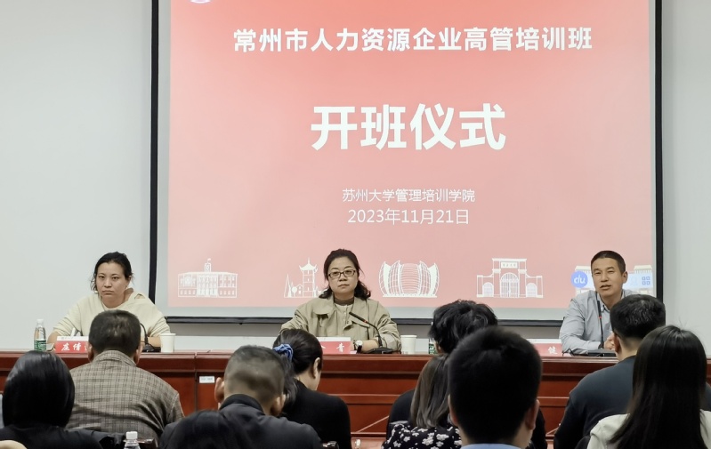 11月21日,常州市人力资源企业高管培训班在苏州大学天赐庄校区顺利开班。常州市人力资源服务行业协会秘书长金青,苏州大学管理培训学院副院长王健出席开班仪式。来自常州市人力资源行业的55名学员参加培训。