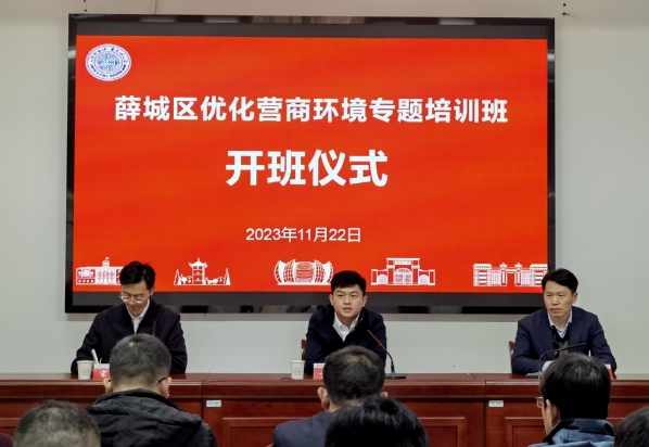 11月22日,薛城区优化营商环境专题培训班在我校顺利开班,来自山东省枣庄市薛城区的48名学员参加了本次培训。薛城区人民政府办公室副主任、区政府事务推进中心主任袁超,苏州大学管理培训学院副院长沈勤出席了开班仪式,开班仪式由苏州大学管理培训学院项目负责人宋帅杰主持。