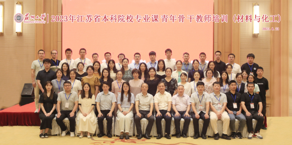 8月22日—27日,2023年江苏省本科院校专业课青年骨干教师(材料与化工)培训在苏州举办。本次培训项目由江苏省教育厅主办,江苏省高校师资培训中心指导,苏州大学材料与化学化工学部承办。苏州大学材料与化学化工学部党委书记李翔、主任张正彪、副主任姚英明出席开班仪式,苏州大学材料与化学化工学部副主任沈勤主持开班仪式。
