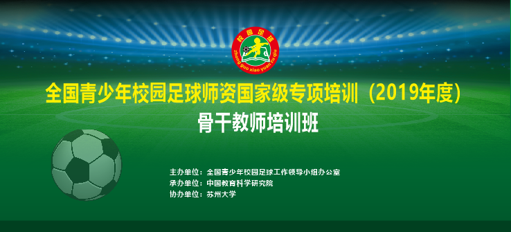2019年12月7日,由全国青少年校园足球工作领导小组办公室主办、中国教育科学研究院承办、苏州大学协办的“2019全国青少年校园足球师资国家级专项培训—骨干教师培训(第三期)”在苏州大学顺利开班。