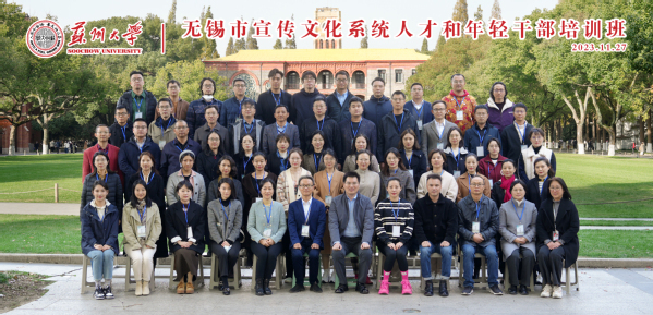 为了深入学习贯彻习近平新时代中国特色社会主义思想和党的二十大精神,认真学习领会习近平文化思想。依据无锡市《“太湖人才计划”宣传文化人才引育实施办法》,11月13日上午,无锡市宣传文化系统人才和年轻干部的培训班在苏州大学顺利开班。参加本次培训的有无锡市第一批太湖文化名家英才和优青,以及宣传文化系统的年轻干部和人才。无锡市委宣传部副部长娄子丹,苏州大学管理培训学院副院长陈星出席了开班仪式。
