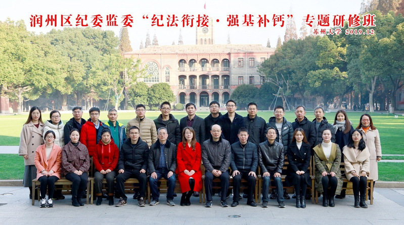 2019年12月9日,刚过大雪节气,飞扬的银杏叶伴着微冷的清风,却抵挡不住学员们求学的热情。苏州大学迎来了一批热情的学员——27名来自镇江市润州区纪委监委的干部们,他们怀着对百年名校的向往、对知识的渴求,踏入了苏州大学,迎来了知识的盛宴。