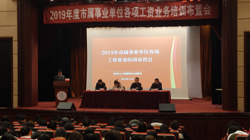 12月3日,由苏州市人社局主办,苏州大学继续教育学院承办的“市属事业单位各项工资业务培训布置会”在苏州大学敬贤堂举办。来自市属事业单位、市委市政府直属参公单位组织的共600多名人事部门负责人、经办人及下属非参公事业单位负责人事工资、财务工作人员参加了本次会议。