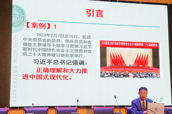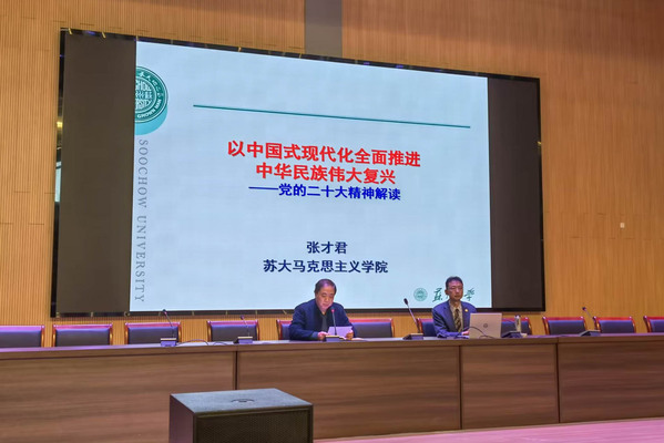 12月1日,由苏州市总工会、苏州大学共同推出的第十二期“思政教师进企业”系列公益讲堂在苏州大学附属昆山市兵希中学成功举办。本次讲座由苏州大学张才君教授主讲,主题为《以中国式现代化推进中华民族伟大复兴 ——学习党的二十大精神》。宣讲由苏州大学附属昆山市兵希中学党委书记曹金元主持,共有50人参与了本次讲座。