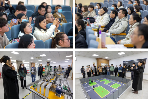 交流期间,参会人员共同来到苏州大学北校区工科楼B栋11楼数字高技能人才实训基地。产业人才培训学院陈思雨老师向来宾详细介绍了数字机房、区块链、物联网等十个实训室的建设成果和培训规划,为参会人员学习新技术提供了一份新规划。