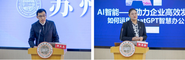 学员郭思静以“AI智能,助力企业高效发展—如何运用ChatGPT智慧办公”为题分享了她的使用感受。她提到,ChatGPT是一种非常有前途的技术,它可以为我们带来更加智能化和便捷化的生活和工作体验。在苏大的学习结束后,ChatGPT加入到她的工作使用中,整体工作效率提升了30%左右,为工作提供了便捷。