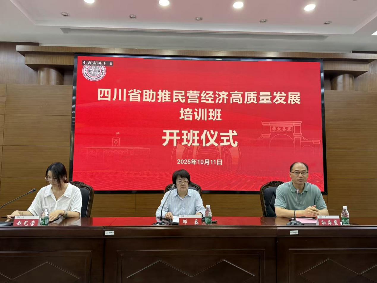 10月11日上午,四川省助推民营经济高质量发展培训班在我校顺利举办。来自四川省的45位民营企业家参加了此次培训,四川省委统战部二级调研员邵磊,苏州大学管理培训学院副院长孙海鹰出席了开班仪式。