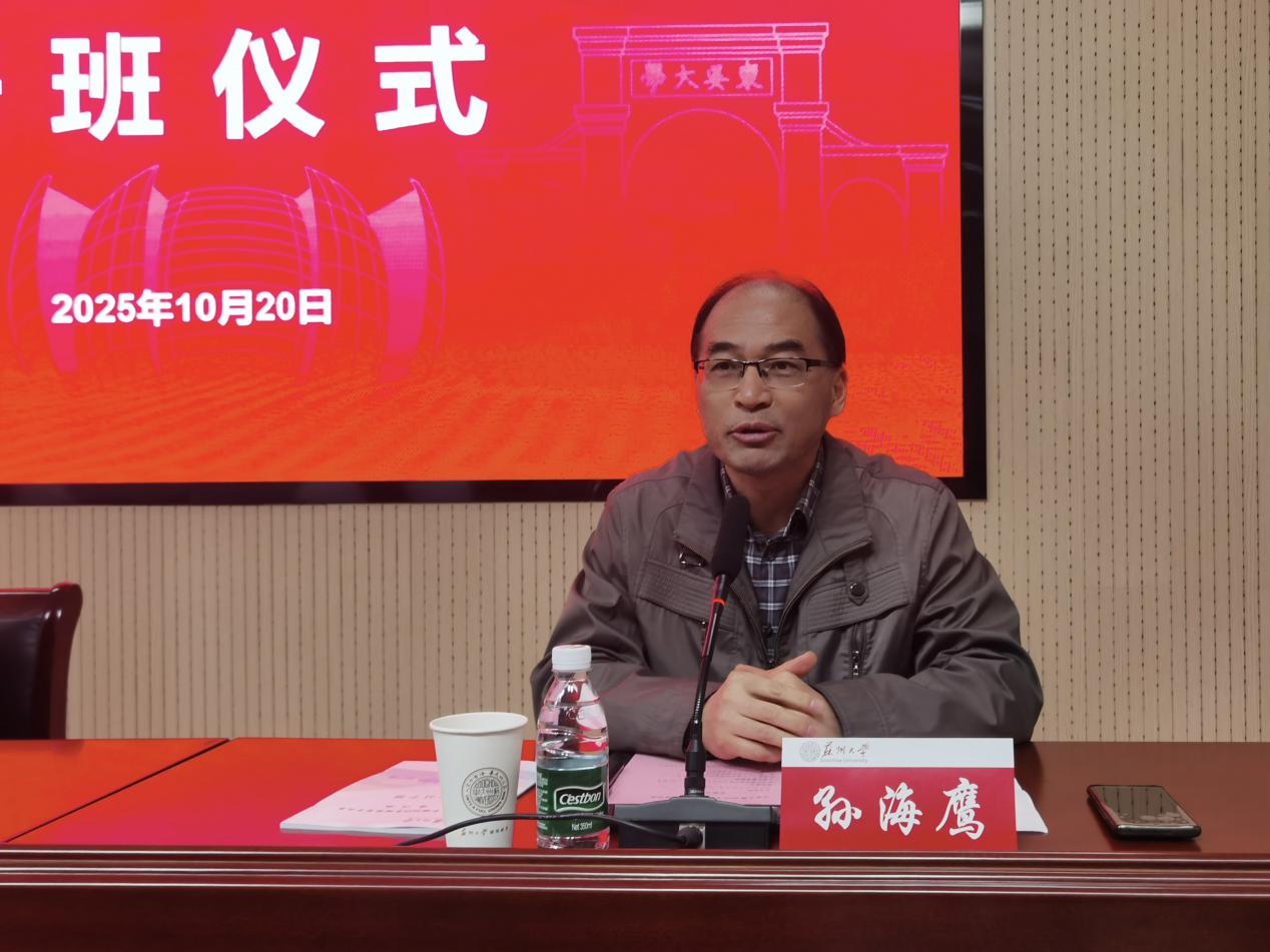孙海鹰致欢迎辞。他首先对参加本次培训的学员表示热烈欢迎,并向学员们介绍了苏州大学的历史沿革以及我校在学科建设、人才培养、科学研究以及服务社会等方面取得的优异成绩。他表示,我校将持续做好高水平培训服务工作,全力为学员们搭建高质量学习平台,提升综合素能。最后,他预祝本次培训班圆满完成,各位学员在苏学习期间一切顺利。