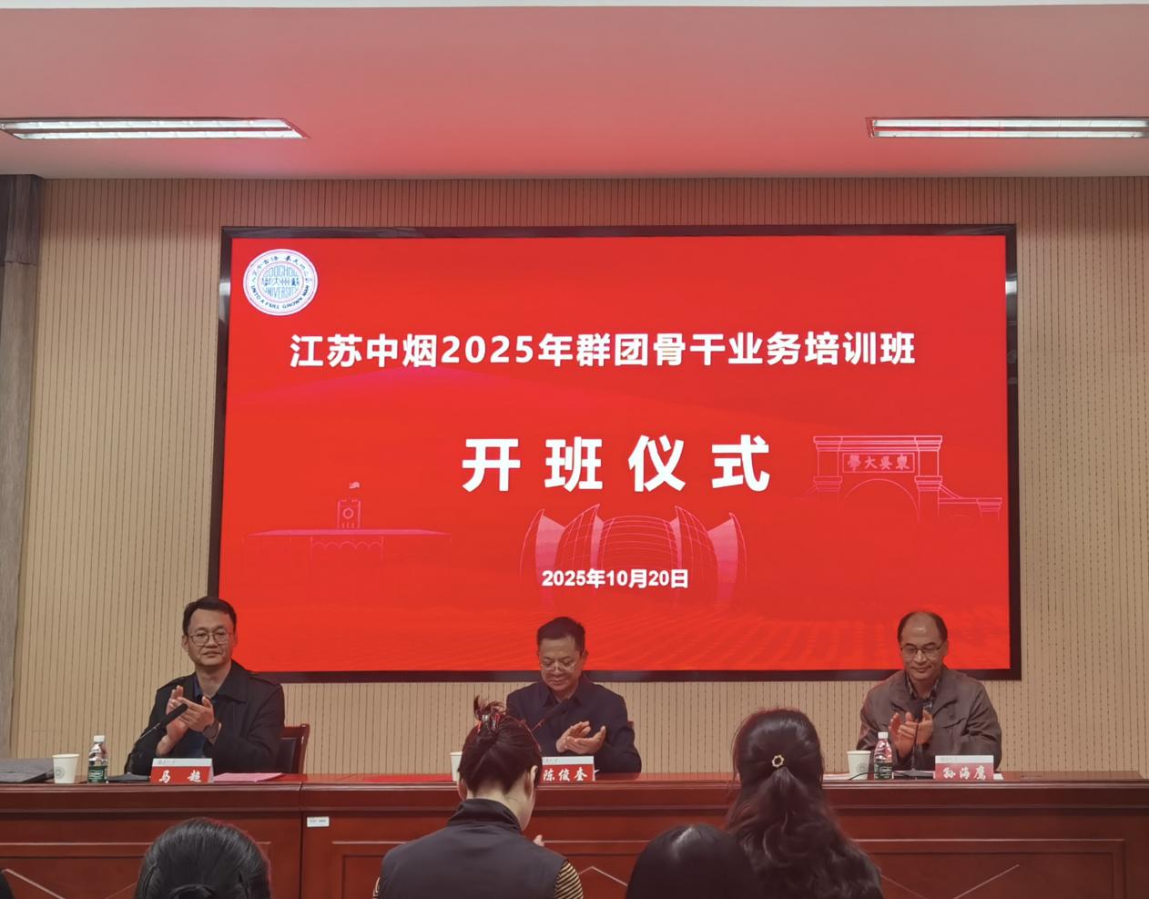 10月20日,江苏中烟2025年群团骨干业务培训班在我校顺利开班。来自江苏中烟工业有限责任公司的49名各条线干部参加了此次培训。江苏中烟党组成员、副总经理陈俊奎,江苏中烟群团工作部部长马超,苏州大学管理培训学院副院长孙海鹰出席了开班仪式。