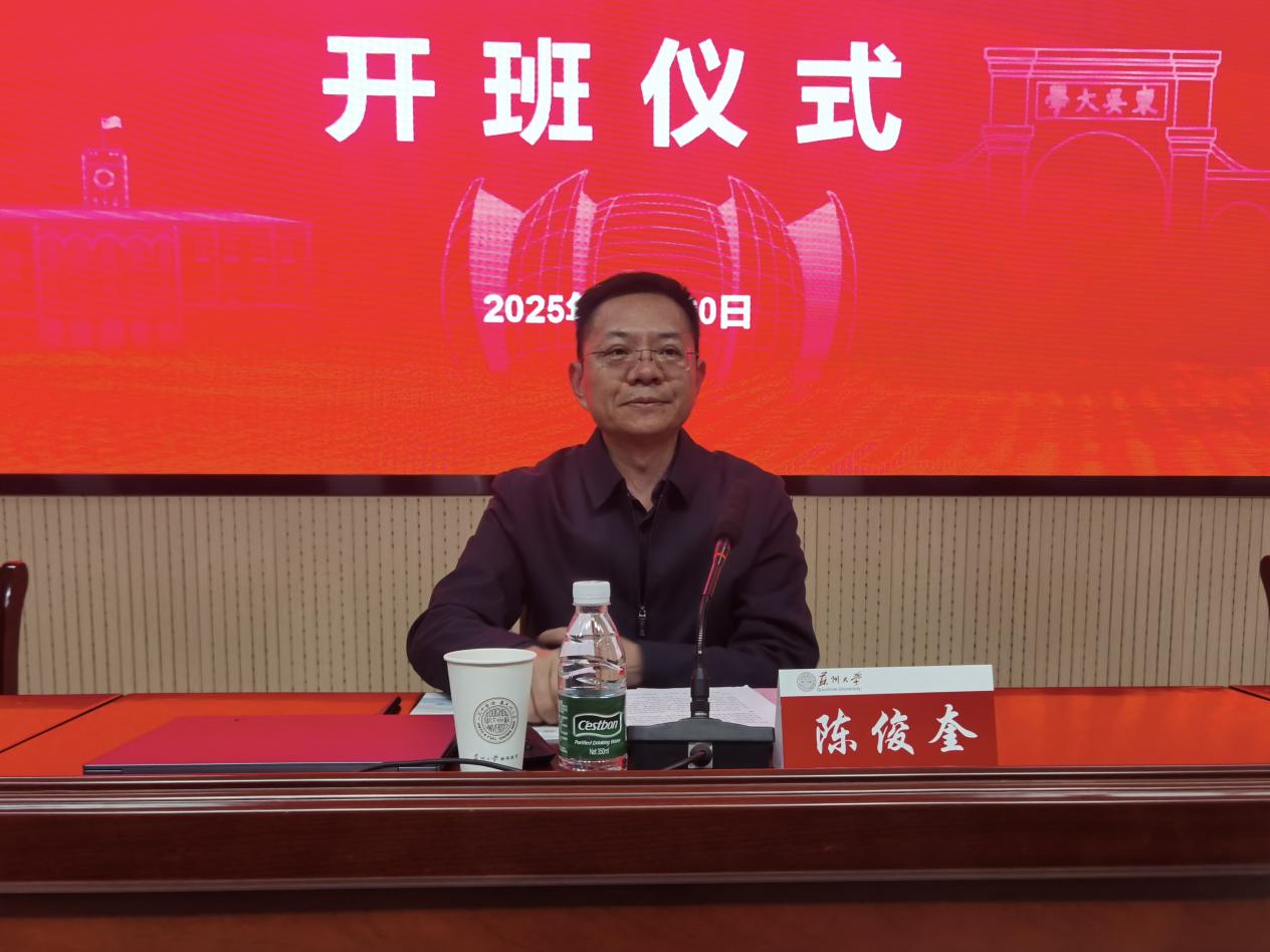 陈俊奎作开班动员讲话。他首先对苏州大学为本次培训作出的安排表示感谢。他表示,这次培训班意义特殊、责任重大,是江苏中烟群团干部筑牢党性根基、系统充电赋能、提升履职本领的难得机遇。为取得更好的学习成效,他对参训学员提出了三点要求:一是登高望远,在“三个维度”中锚定群团工作的时代坐标;二是知行合一,在“四种角色”中锻造群团干部的过硬本领;三是担当实干,在“三个聚焦”中开创群团工作的崭新局面。最后,他预祝本次培训顺利圆满,各位学员学有所成、学有所获。