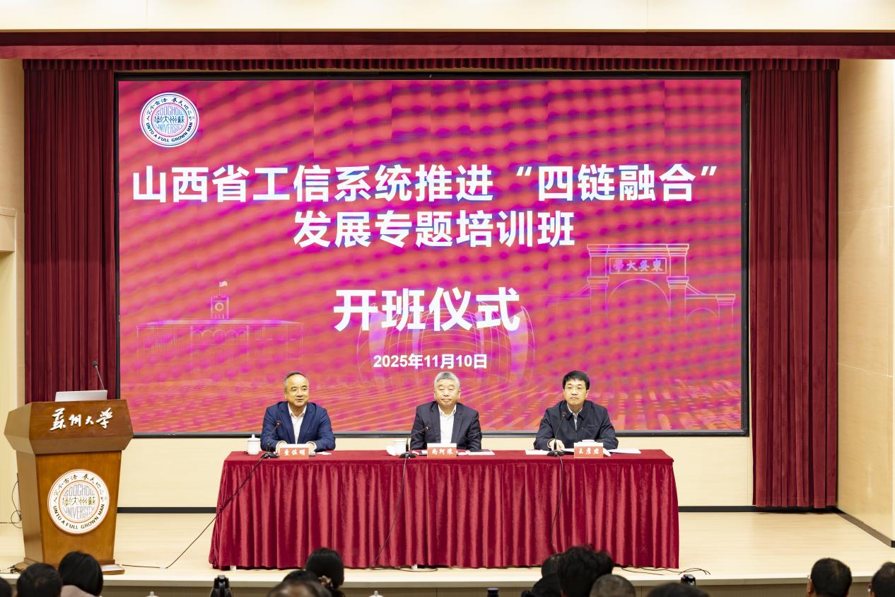 11月10日,山西省工信系统推进 “四链融合” 发展专题培训班在我校顺利开班。来自山西省工信系统的80余名领导干部齐聚苏大校园,共同开启为期一周的学习征程。山西省工信厅党组成员、副厅长尚阿浪,苏州大学党委常委、副校长查佐明出席开班仪式,仪式由山西省工信厅人事教育处处长王彦君主持。