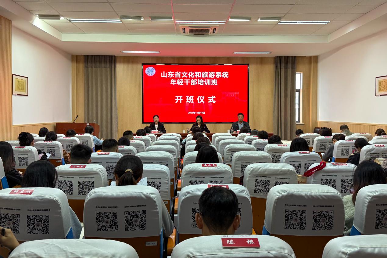 11月10日,山东省文化和旅游系统年轻干部培训班在我校顺利开班,来自山东省文化和旅游系统的近60名学员参加了此次培训。山东省文化和旅游厅人事处二级调研员陈雯,苏州大学管理培训学院副院长居民出席了开班仪式。