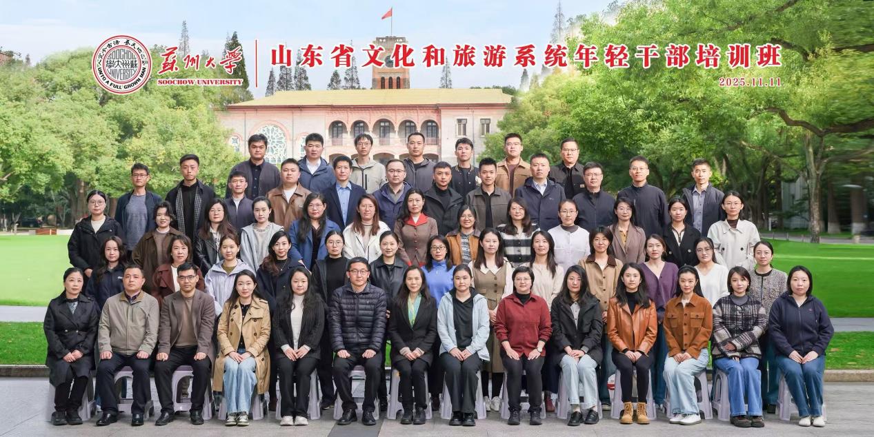 居民致欢迎辞。他对全体学员的到来表示热烈欢迎,并向学员们介绍了苏州大学百余年的办学积淀,包括我校在学科建设、人才培养、科研创新及社会服务等领域的突出成果。他表示,苏州与山东同为文化底蕴深厚之地,文旅发展各有特色与优势,希望学员们能在苏大沉浸式汲取知识养分,积累实践经验,将所学所悟转化为推动工作的实际能力,为山东文旅事业高质量发展注入新动能。最后,他预祝本次培训圆满成功。