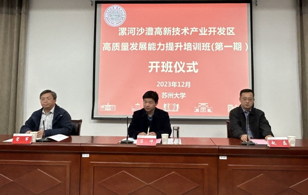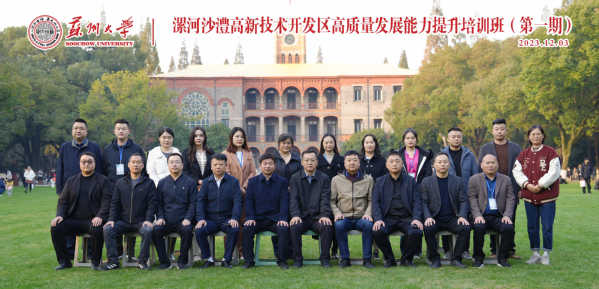 12月3日,由苏州大学继续教育学院承办的“漯河沙澧高新技术产业开发区高质量发展能力提升培训班(第一期)”在苏州大学如期举行。来自开发区综合办、投资促进局、经济发展和科技统计局、规划建设局等各部门负责人共21位学员参加了本次培训。漯河沙澧高新技术开发区党工委书记、管委会主任吕峥,漯河沙澧高新技术开发区党工委委员、管委会副主任赵磊,苏州大学管理培训学院副院长宋军出席了开班仪式。