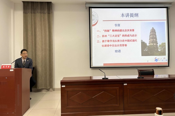 宋军首先对培训学员表示欢迎。并向学员们介绍了苏州大学的百年发展历程、学科建设、师资设置及各校区概况。表示将聚焦培训需求,充分发挥我校在教育培训领域的突出优势,持续做好高水平的培训服务工作。最后,他预祝本次培训班圆满完成,学员能够满载而归。