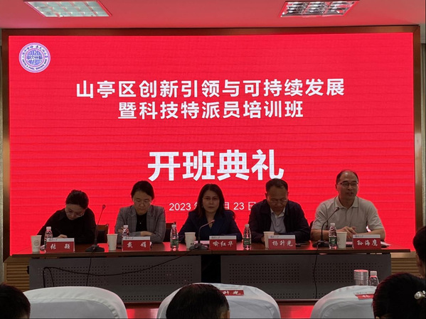 10月23日,由苏州大学承办的“山亭区创新引领与可持续发展暨科技特派员培训班”在我校顺利开班。来自山东省枣庄市的46名学员参加了本次培训,山东科技特派员共同体CEO喻红华,枣庄市科技局副局长杨升光,山亭区人民政府副区长戴娟,山亭科学技术局党组书记、局长张颖,苏州大学管理培训学院副院长孙海鹰出席了开班仪式。