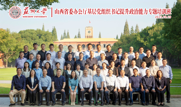 10月19日上午,由苏州大学承办的山西省委办公厅基层党组织书记提升政治能力专题培训班在我校顺利开班。来自山西省委办公厅的51位党务干部参加本次培训,山西省委副秘书长武晋同志,苏州王健法学院党委书记孙宁华同志出席了开班仪式。