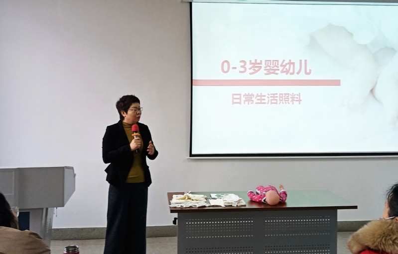 讲座邀请了全国高级育婴师、全国家政培训师导师宗根英女士亲自授课。宗老师从婴幼儿喂养、婴幼儿睡眠、婴幼儿二便三个方面详细讲解了0-3岁婴幼儿的日常生活照料,如何呵护“花苞”健康成长。