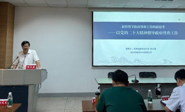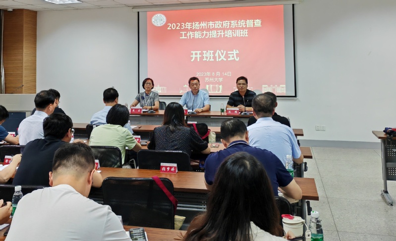 8月14日, 2023年扬州市政府系统督查工作能力提升培训班在我校如期举行。来自扬州市政府各区县相关督查部门的60位学员参加了本次培训班。苏州大学继续教育学院院长助理、培训部主任陈耀,扬州市政府办副主任刘庄参加了开班仪式。