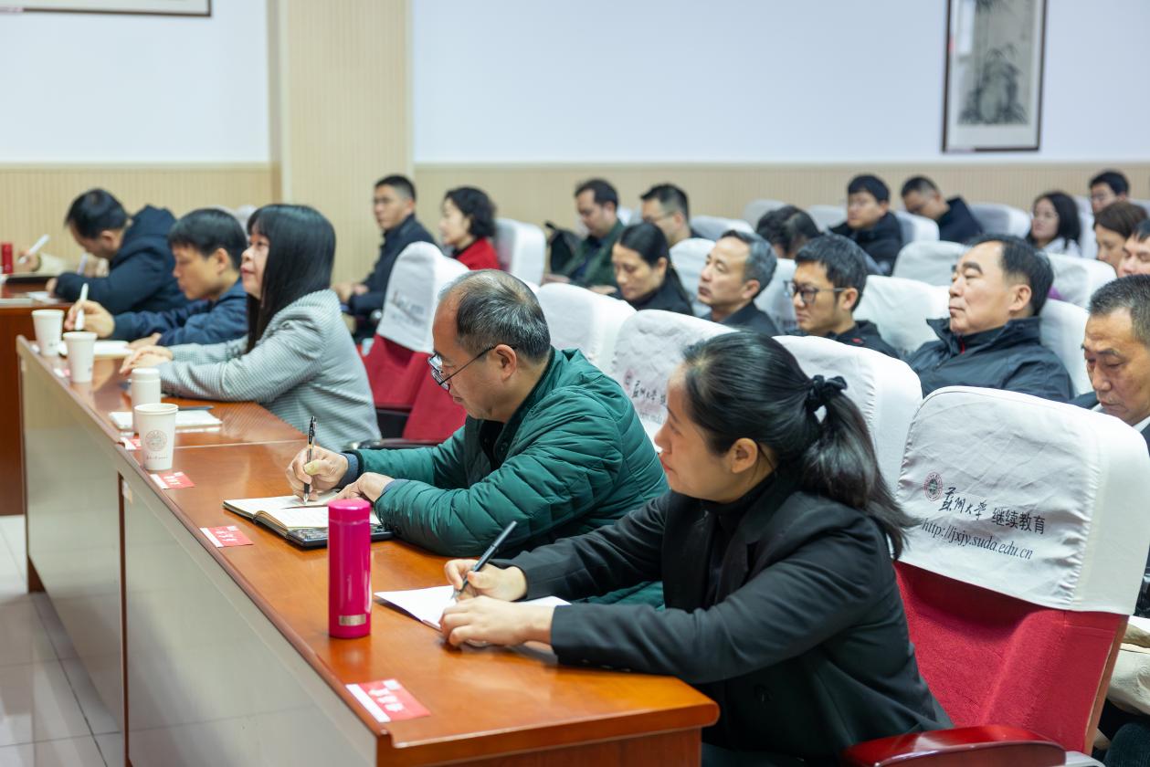 开班仪式上,张正彪致欢迎辞。他介绍了苏州大学的办学历史、学科特色和继续教育发展情况,并表示,苏州大学将依托优质教育资源和长三角地区发展经验,全力做好培训服务保障工作,助力广西科技社团干部拓宽视野、提升能力,进一步推动苏桂两地在科技创新、人才培养、科技服务等方面的交流与合作。最后,他预祝本次培训班圆满成功。