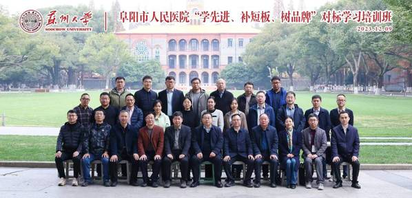 12月9日,由苏州大学承办的阜阳市人民医院“学先进、补短板、树品牌”对标学习培训班在我校顺利开班,来自阜阳市人民医院的30名管理干部和科室人员参加了此次培训。开班仪式由阜阳市人民医院党委委员、纪委书记陈文恒主持,阜阳市人民医院党委副书记、院长刘洪波,苏州大学苏州医学院副院长宋军,阜阳市人民医院副院长宋坤出席此次开班仪式。