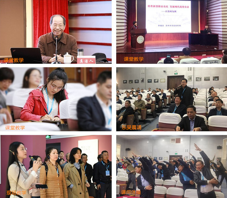 本次研修班由苏州大学干部培训学院承办,课程采用理论教学、现场教学与研讨相结合的形式,本期“乡村振兴”专题邀请了来自上海市习近平新时代中国特色社会主义思想研究中心、解放日报社、苏州干部学院、苏州大学等知名专家学者围绕“深入贯彻十九届五中全会精神,着力推进乡村振兴战略”“深入学习四史,坚守理想信念”“培育新型职业农民、发展现代高效农业”“以供给侧结构性改革引领美丽乡村建设(乡村旅游业发展)”等主题进行了专题授课。