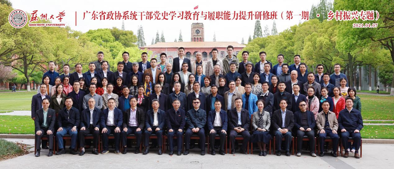 4月7日,广东省政协系统干部党史学习教育与履职能力提升研修班(第一期·乡村振兴专题)开班仪式在苏州大学红楼学术报告厅举行。