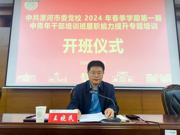 4月14日,中共漯河市委党校2024年春季学期第一期中青年干部履职能力提升专题培训班在我校顺利开班,来自河南省漯河市的五十余名领导干部参加了此次培训。中共漯河市委组织部部务委员王晓民,中共漯河市委党校党委委员、教育长毛志凌,苏州大学管理培训学院副院长沈黔出席此次开班仪式。