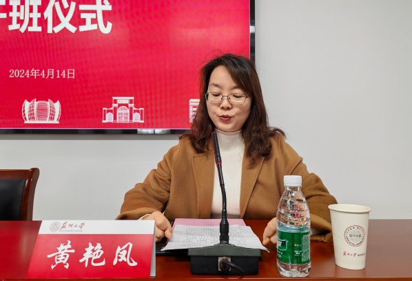 黄艳凤对参加培训的学员表示欢迎。她向学员们介绍了苏州的历史文化及苏州大学的百年发展历程。同时,就苏州大学的学科建设、人才培养、科学研究、师资设置以及社会服务等方面作了简要说明。我校将聚焦培训需求,充分发挥我校在教育培训领域的突出优势,持续做好高水平培训服务工作。最后,她预祝本次培训圆满完成。