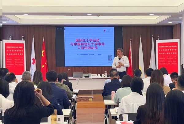 本次培训为期五天。刘选国以《国际红十字运动与中国特色红十字事业人道资源动员》为题讲授了开班第一课。同时还开设了《红十字会参与基层社会治理的机制、过程与效能》《融媒体时代的舆情危机与应对》等理论课程。