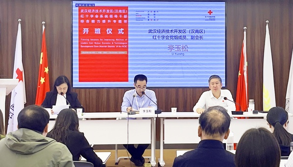 4月16日上午,武汉经济技术开发区(汉南区)红十字会系统领导干部综合能力提升专题班在我校红十字国际学院开班。武汉经济开发区红十字会党组成员、副会长李玉松,苏州大学红十字国际学院副院长刘选国出席开班仪式。武汉经济开发区红十字会赈济科科长张爱华主持开班仪式。