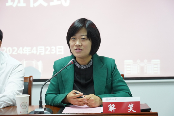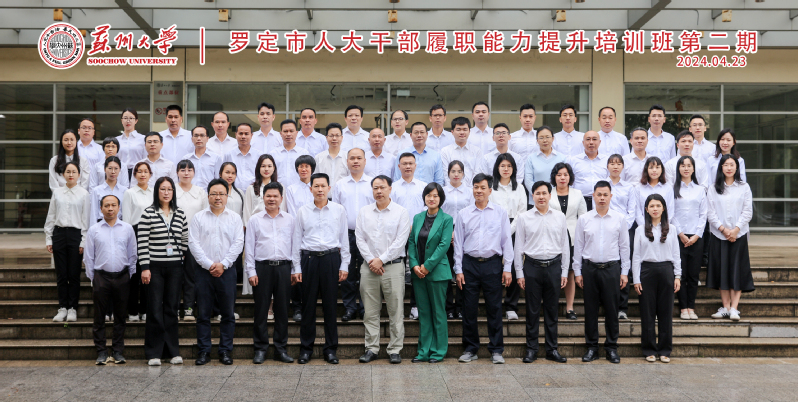 解笑对全体学员的到来表示欢迎。她向学员们介绍了苏州城市发展的文化内涵、苏州经济的发展和腾飞。同时,还向学员们介绍了苏州大学前身东吴大学的历史和苏州大学百年发展历程。解院长表示:来到苏大进行学习培训,相信大家一定会有所收获,对今后的工作有所帮助。希望在苏州的这一段培训之旅,有助于提升罗定市人大干部的理论修养和业务素质,更好地推动人大工作高质量开展。同时也希望大家能够通过本次培训,真正了解苏州、记住苏大。