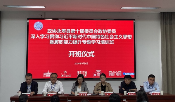 5月8日,政协永寿县第十届委员会政协委员深入学习贯彻习近平新时代中国特色社会主义思想暨履职能力提升专题学习培训班在我校顺利开班。来自咸阳市永寿县各行各业的46名政协委员参加了本次培训。永寿县政协党组书记、主席樊莉霞,永寿县政协党组副书记、副主席梁高峰,咸阳市政协委员、县政府副县长王宁,永寿县政协党组成员李国华,永寿县政协副主席姚旭辉,苏州大学管理培训学院副院长赵曜出席了开班仪式。