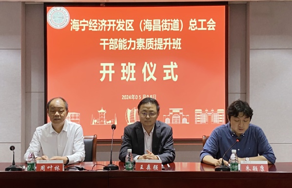 5月8日下午,由海宁经济开发区(海昌街道)总工会主办,苏州大学承办的2024年海宁市经济开发区(海昌街道)总工会干部能力素质提升班在我校顺利开班。来自海宁经济开发区(海昌街道)各基层工会的主席和委员等60名学员参加了此次培训。海宁市海昌街道党委副书记王森强,海宁经济开发区(海昌街道)总工会主席周叶林,苏州大学管理培训学院副院长朱颖康出席了开班仪式。