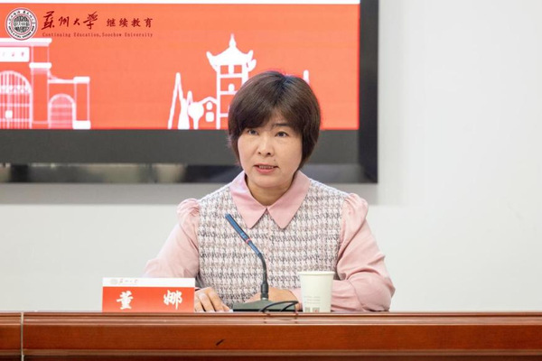 开班仪式上,董娜对全体学员的到来表示诚挚的欢迎,并向学员们介绍了苏州大学的百年历史、办学优势和学科建设成果。她在讲话中强调了本次培训的重要意义,并表示,本次培训的课程涵盖九个方向,旨在提升爱普集团中高层管理人才的业务能力和专业素养,以适应新时代企业的发展需求。她希望学员们积极参与各项课程、遵守纪律、勤于思考,在培训后能够学有所获、学以致用,为爱普集团的发展贡献自己的力量。