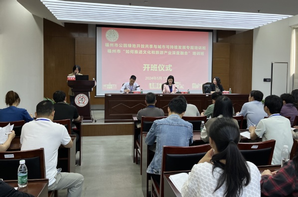 5月13日上午,由福州市人力资源和社会保障局主办的2024年福州市“公园绿地开放共享与城市可持续发展”和2024年“如何推进文化和旅游产业深度融合”两个专题培训班在我校顺利开班。来自福州市的100多名从事园林和文旅相关工作的业务骨干和管理人员参加了本次培训。福州市人力资源和社会保障局副局长张莺,福州市园林中心党委委员、副主任林德昌,苏州大学建筑学院党委书记陈国凤出席了开班仪式。仪式由苏州大学管理培训学院培训中心项目负责人李艳玲主持。